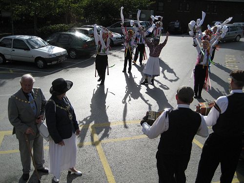Back at the Village Hall the team perform for the Mayor and Consort
