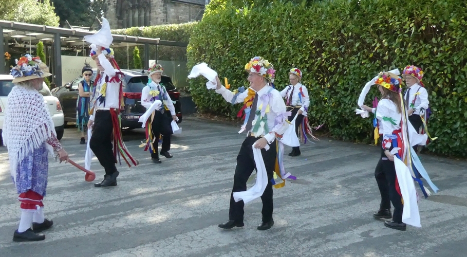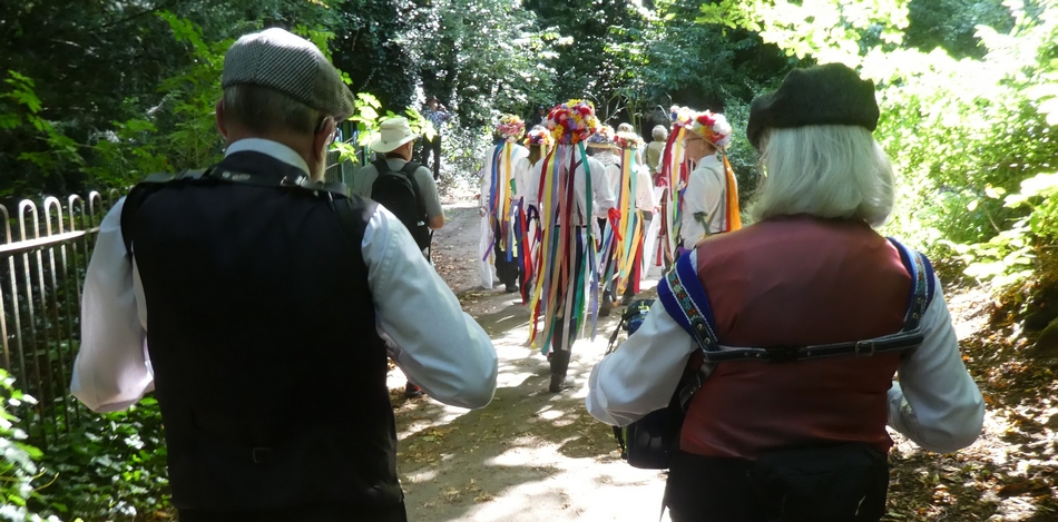 Gathering for the walk to the church via The Dell
