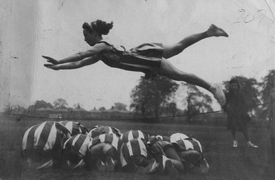 Gloria Eastwood - the flying leaper in the dramatic acrobatic photograph - went on to run her own dance school in the Stockton Heath area under the name of "Gloria Blair".