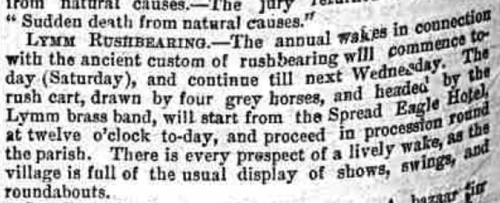 rushbearing will commence today (Saturday) and continue till Wednesday.